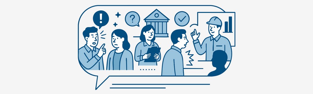 Die Seminare richten sich an Mitarbeitende im technischen Projektumfeld – insbesondere aus den Bereichen Genehmigung, Anlagenbetrieb und Umwelt– die in ihrer täglichen Arbeit zunehmend mit kommunikativen Herausforderungen konfrontiert sind: