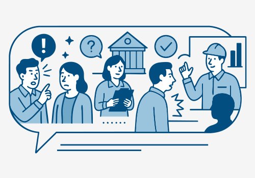Technische Argumente allein reichen oft nicht aus. Unsere praxisnahen Trainings unterstützen Fachkräfte in Projekten und Genehmigungsverfahren dabei, komplexe Inhalte verständlich zu vermitteln, sicher aufzutreten und Gespräche souverän zu führen – auch unter Druck. Mit wirkungsvollen Tools für klare Kommunikation sind Sie bestens vorbereitet.